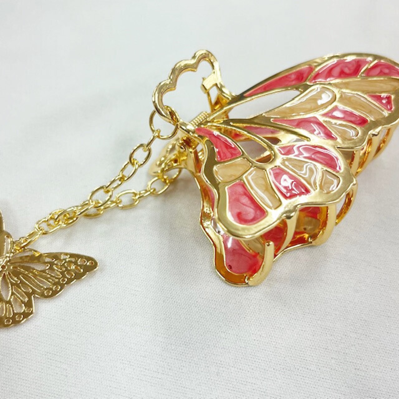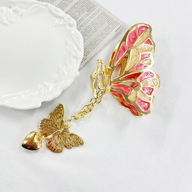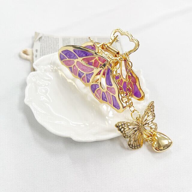 華やかで個性的なデザインのカラー蝶バンスクリップ。ご自身のスタイルに合わせて、さまざまなシーンで活躍します。カラフルなカラーリングと優雅な蝶の形が、あなたの髪を美しく演出し、アレンジを楽しむことができます。普段使いはもちろん、特別な日のおしゃれにもぴったりなアイテムです。