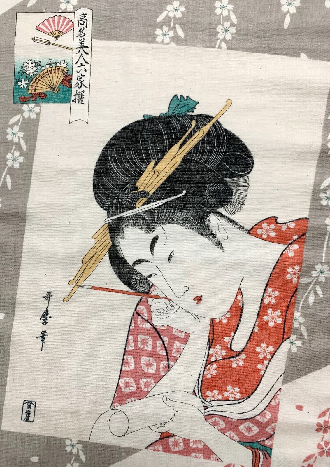 江戸時代に活躍した有名浮世絵師「喜多川歌麿」の美人画を、手拭いに描いた商品です。