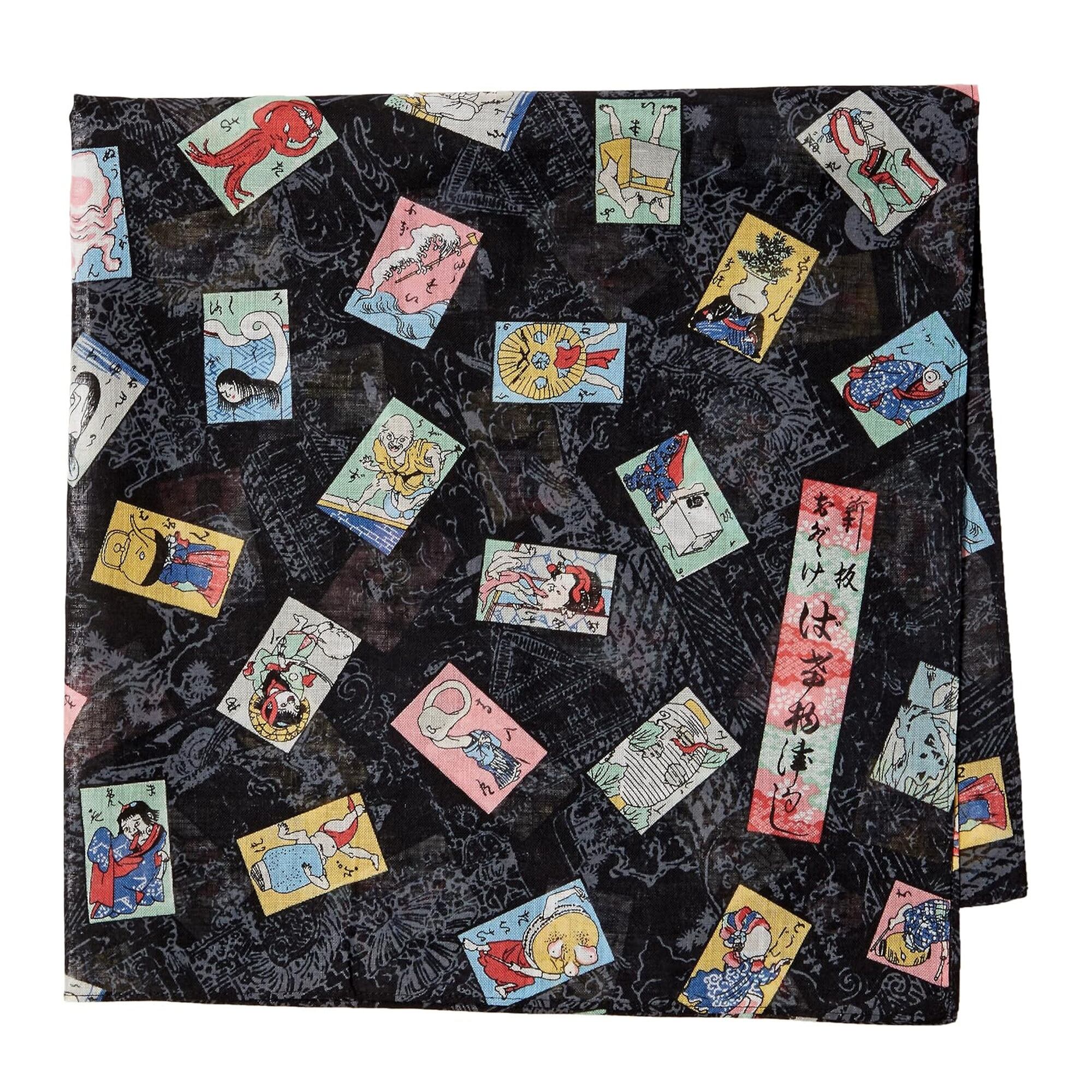 ハンカチ 妖怪づくし おどけばけもの尽くし 黒