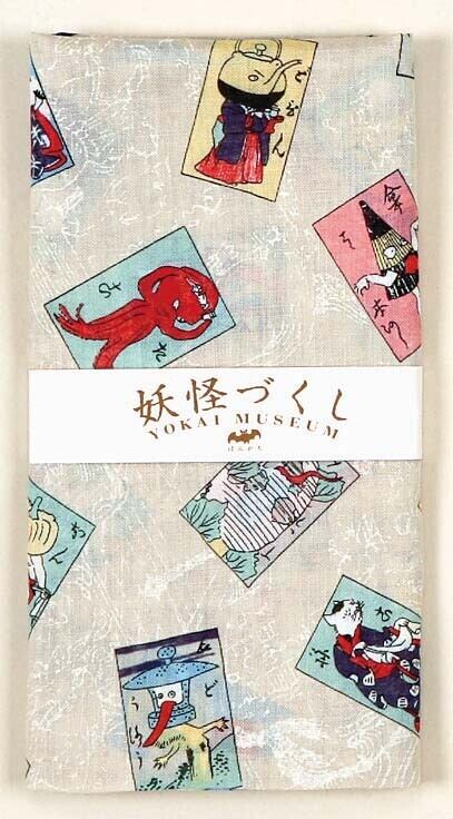 日本の伝統的な怪異・妖怪たちを楽しく描いた 「妖怪づくし おどけばけもの尽くし」ハンカチ。江戸時代から伝わる妖怪文化をモチーフに、個性豊かな「おどけばけもの(化け物)」の姿がプリントされています。茶目っ気のあるデザインは、怖さとかわいさが同居する独自の世界観が魅力です。