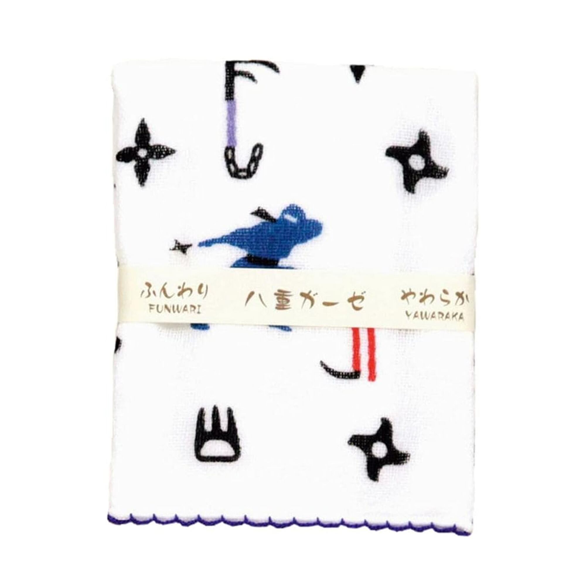 忍者をテーマにしたデザインが楽しい、ふんわり八重ガーゼハンカチです。重ねた8層のガーゼ生地が空気を含んでふっくらとやわらかく、吸水性・通気性にも優れた使い心地。洗うほどにガーゼの風合いがやわらかくなり、肌に馴染んでいきます。