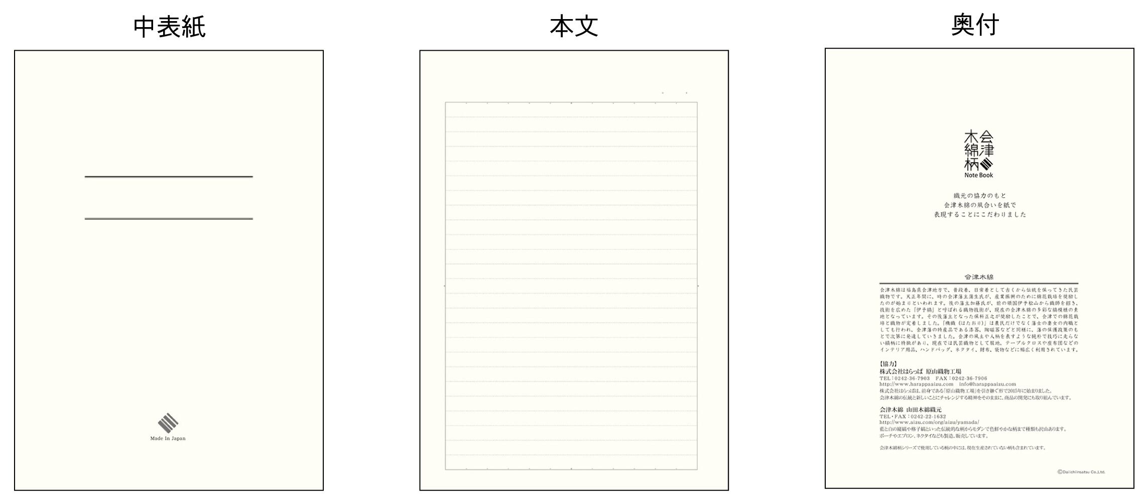 織元と協力して実際の柄を紙文具にしたのがこのノートです。