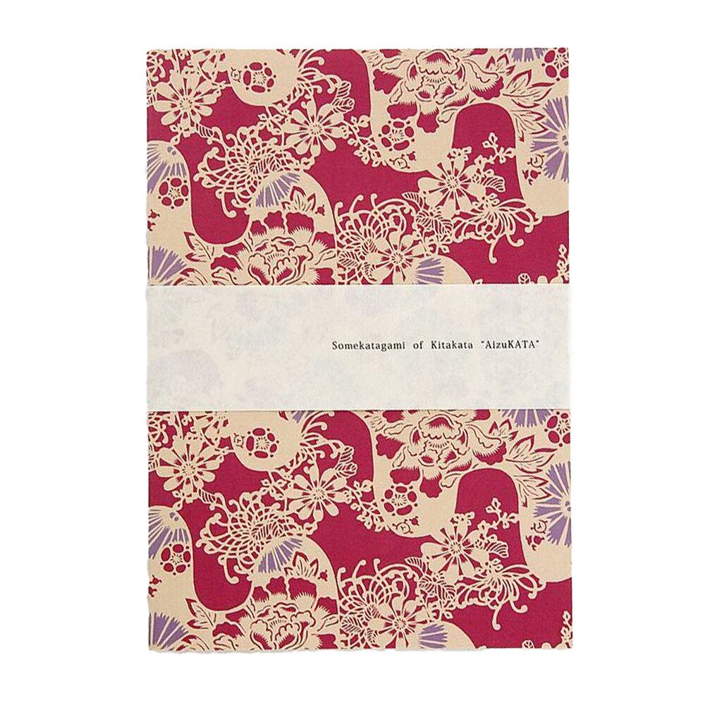 A5ノート 流れに花尽くし 喜多方の染型紙 会津型